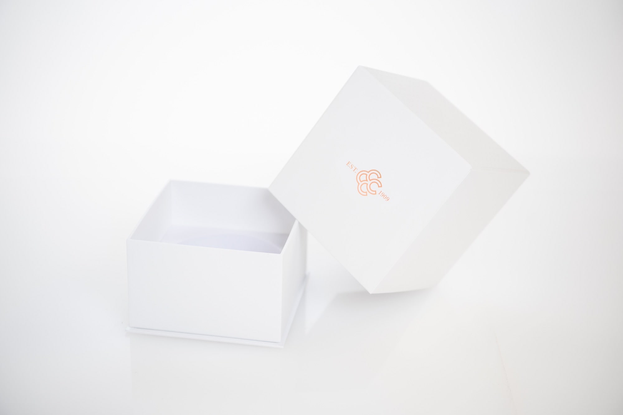 Unboxing: A rose gold holographic hot foil stamp and subtle spot gloss logo pattern radiates class and quality on this heavyset high-end presentation box.