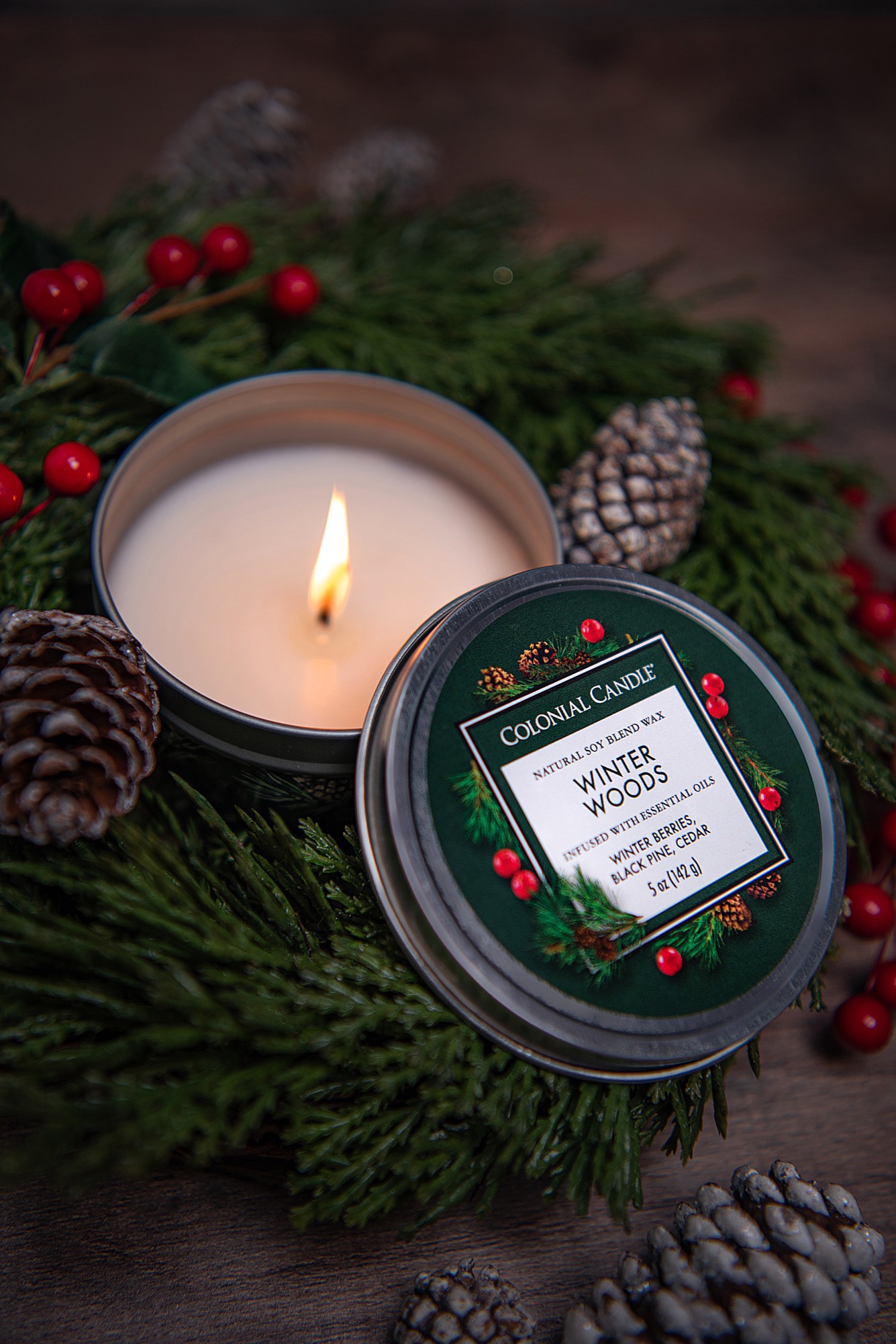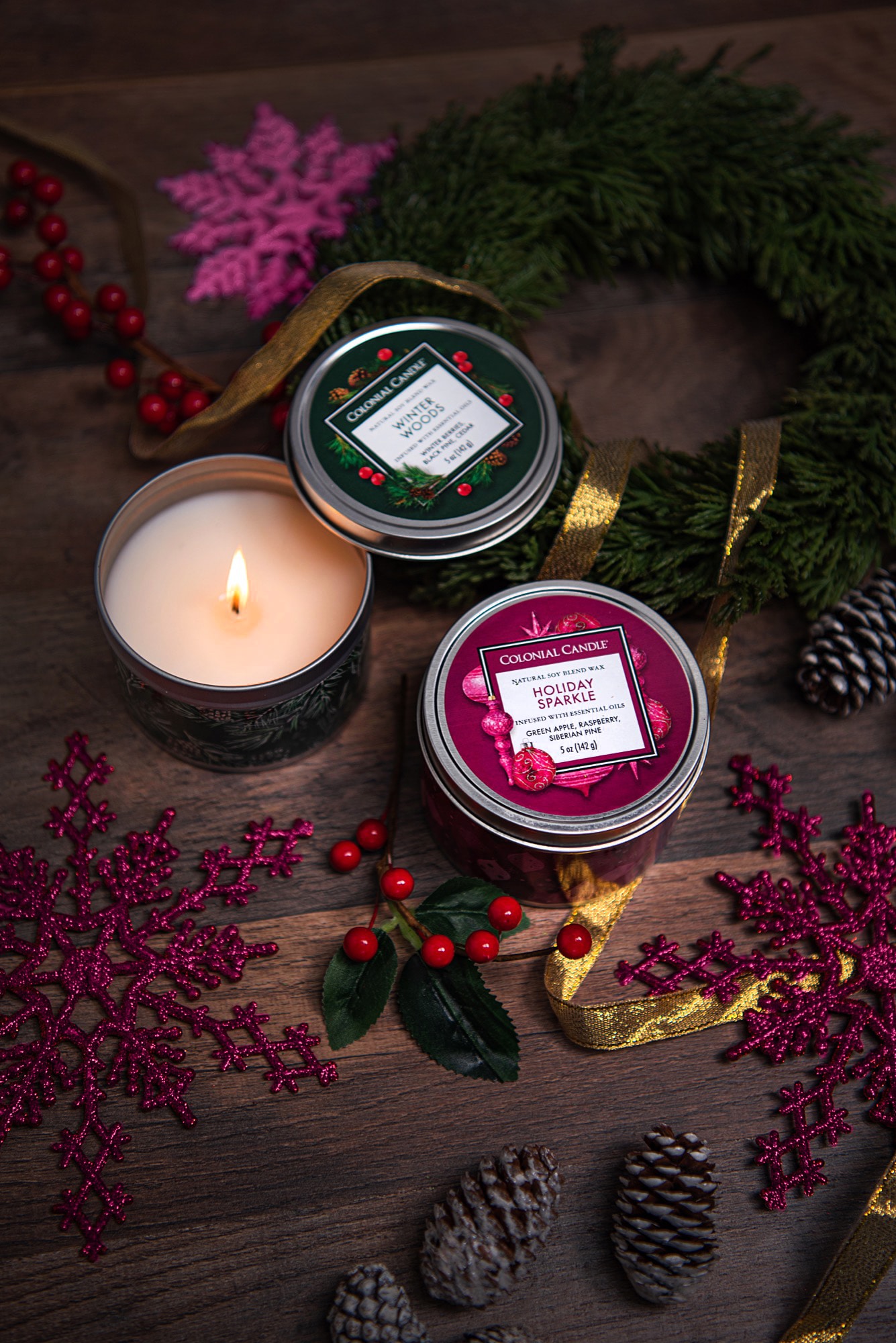 Bestsellers Winter Woods and Holiday Sparkle blend notes of effervescent berry, pine, and cedar.