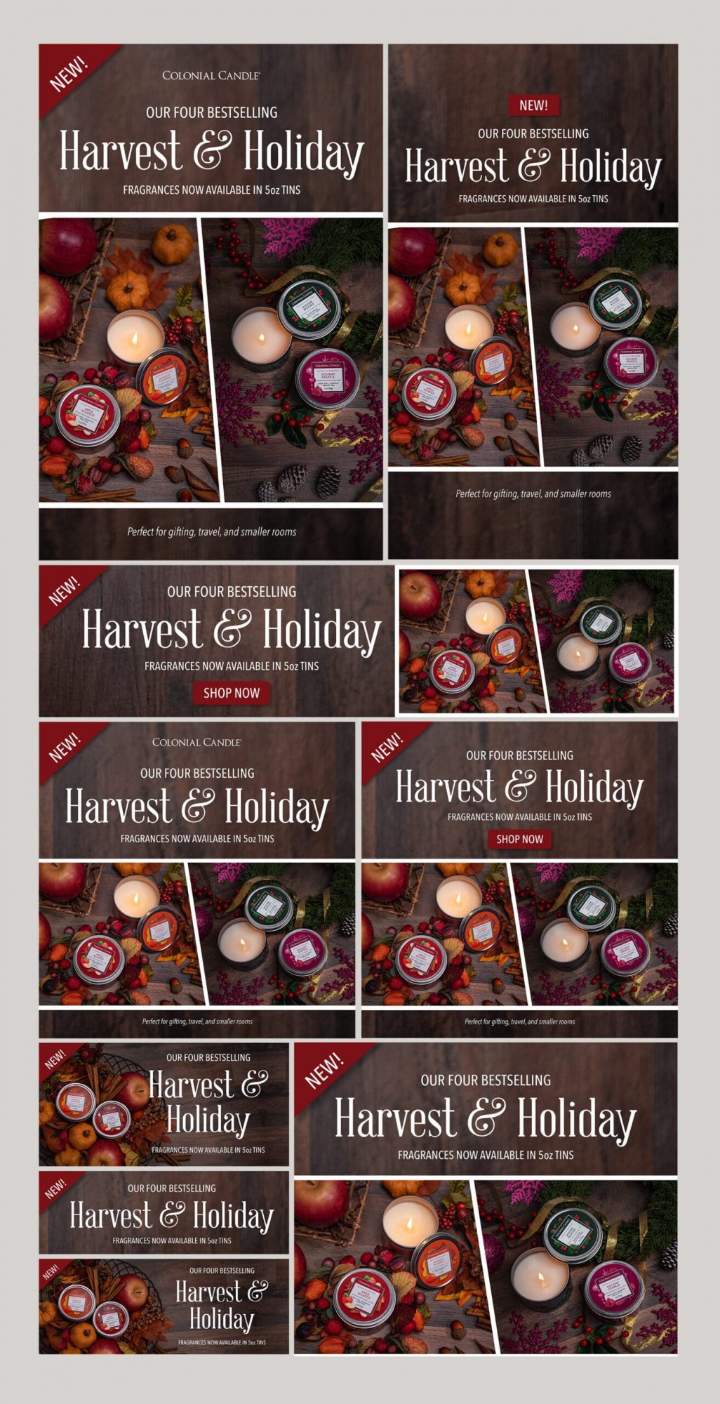 Marketing graphics sets created for email, web banners, Facebook, Instagram, and Google Ads.