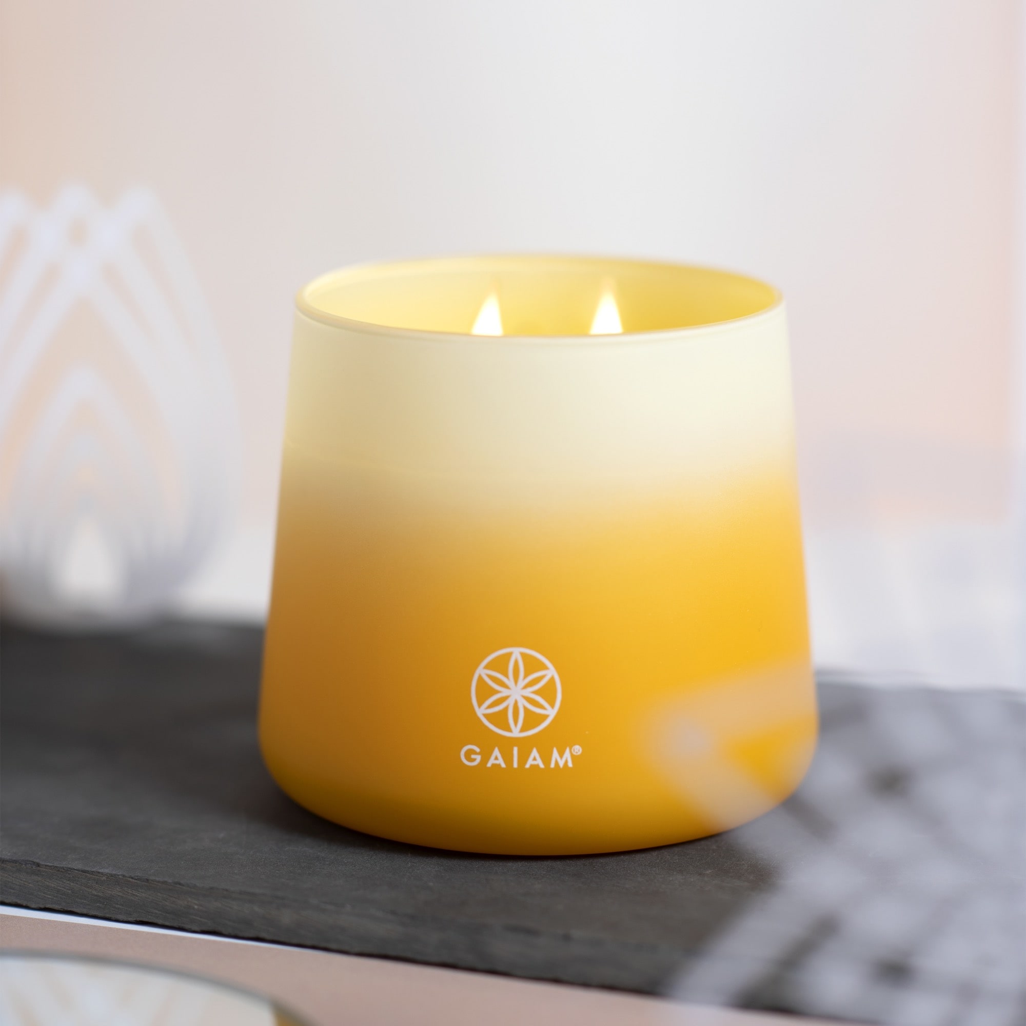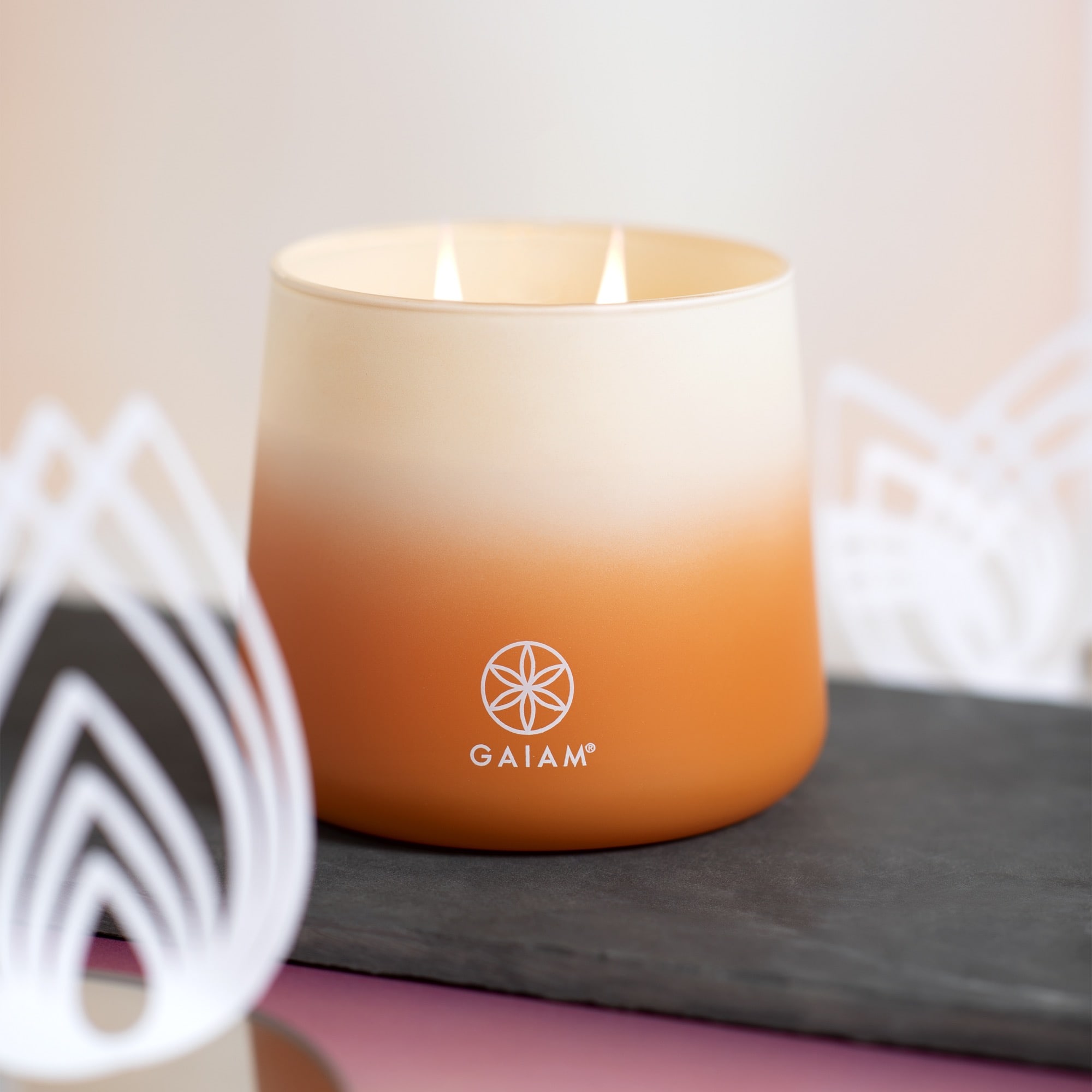 Each candle in Gaiam's collection is inspired by one of the 7 Chakras, with fragrance and color carefully aligned to its energy and intention—from the grounding aroma of sandalwood for the Root Chakra to the calming lavender of the Crown. Built fully from scratch - from all-natural fragrance development, to custom vessel shape, proprietary paint method, and wrap packaging.